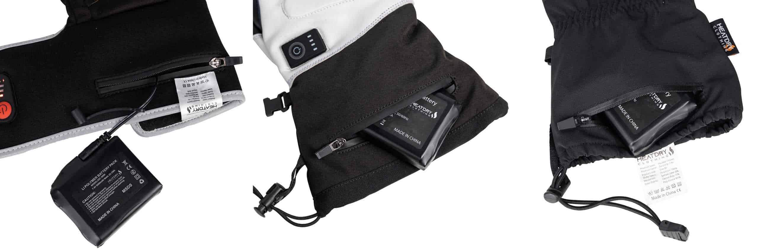 Uitneembare batterij opladen via USB of netadapter, in ongeveer 3–5 uur per batterij. HEATDRY’s oplaadbare handschoenen worden verkocht met een snellader (vanaf 2025), waardoor beide batterijen in 3 uur zijn opgeladen.